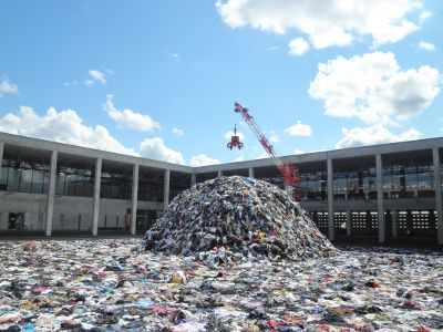 館内へ入ってすぐに心臓の鼓動音、機械音ともに目に飛び込んでくるのが、クリスチャン・ボルタンスキーの『No Man's Land』。