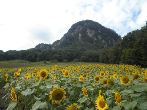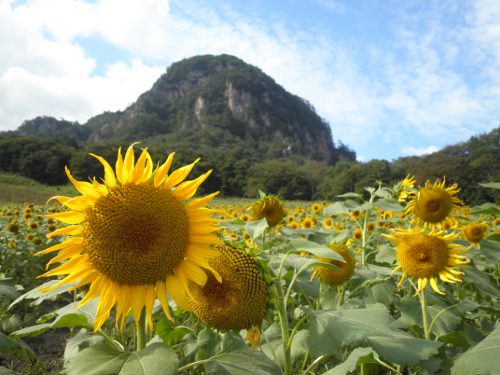 大岩を背にしたヒマワリ畑は、なんだか日本じゃないみたいな景色!